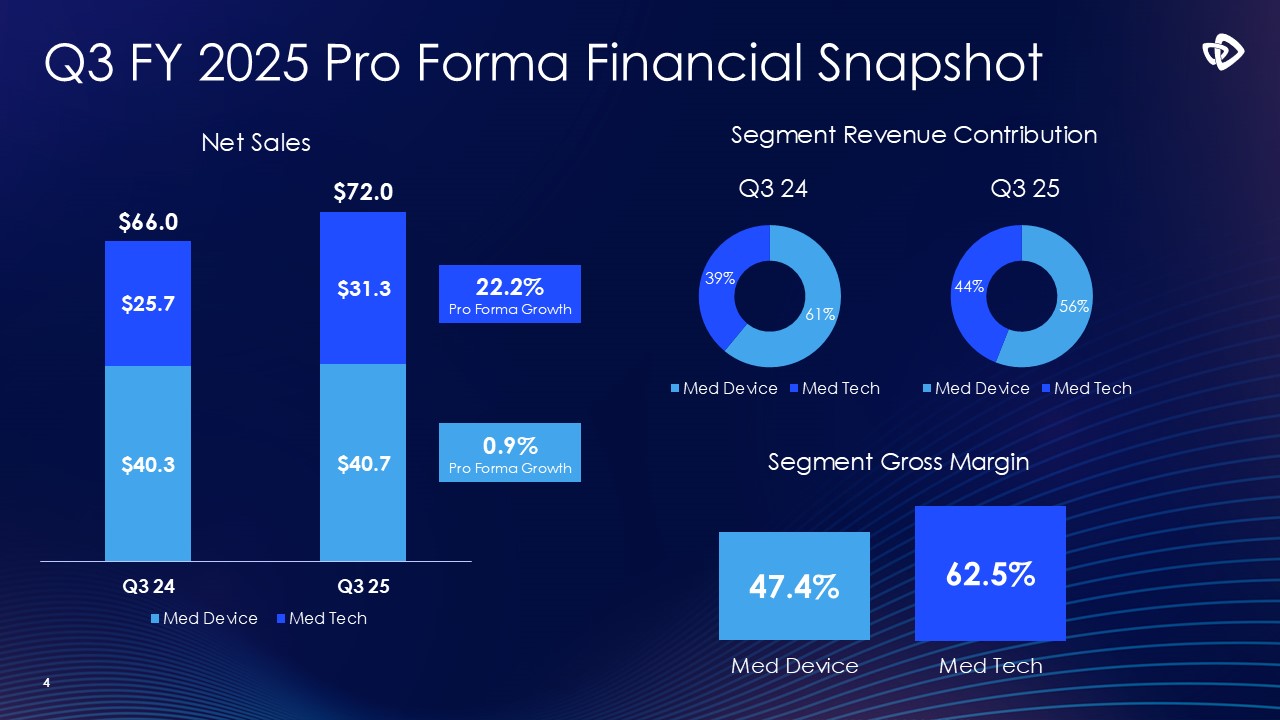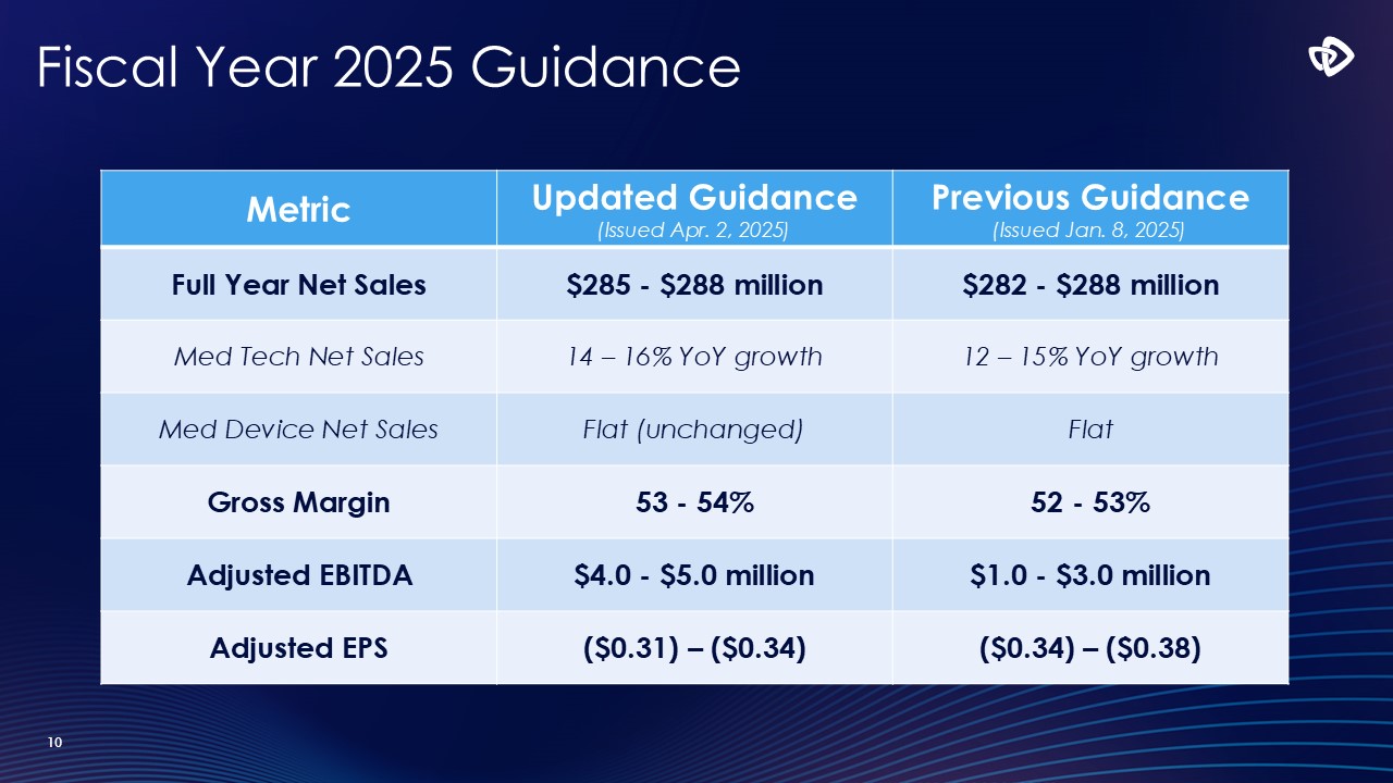 Increasing fiscal year 2025 guidance for net sales, Med Tech net sales growth, gross margin, Adjusted EBITDA, and Adjusted EPS